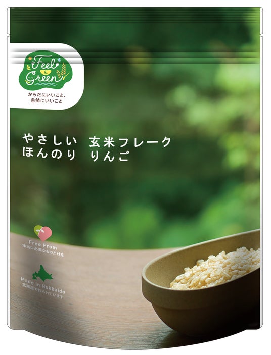「本当に必要な」ものだけで作ったこだわりの玄米フレーク。青森県産りんご果汁で、やさしい味付けした北海道産玄米フレークです。お子様の「やさしい」おやつとしても最適です。