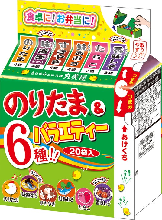 丸美屋食品工業株式会社(本社:東京都杉並区、社長:阿部豊太郎)は、「のりたま&バラエティー」「のりたま&バラエティー10袋入」を9月からリニューアル発売いたします。