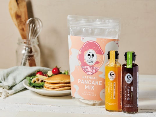 カフェでも人気のオートミールパンケーキをおうちで楽しめるパンケーキミックスなどが、限定パッケージで登場。パンケーキとドレッシングで、カフェ風モーニングプレートを楽しむのもOK!