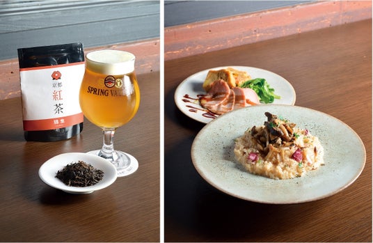 さらに、京都紅茶の茶葉を使用したフードメニューの2種類を期間限定で販売します。松本ブリュワー監修による京都産の旬の食材の魅力を京都紅茶で引き出した「京都紅茶のリゾット 旬のキノコを添えて」と、「京都紅茶のケークサレと京丹波高原豚の自家製ハムの盛り合わせ」は、ビールとぴったりのペアリングをご体験いただけます。