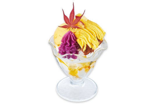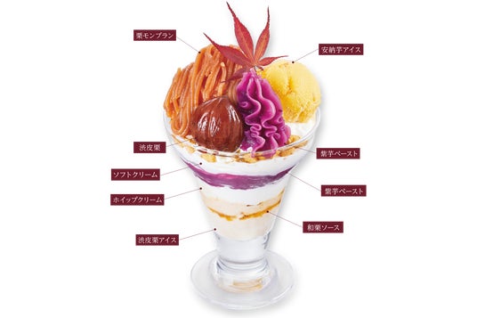 特に秋に人気なものを詰め込んで芋と栗のいいとこどりをしたパフェ。