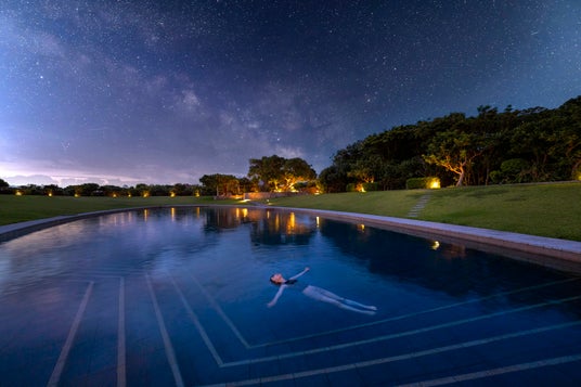周囲約9kmの小さな竹富島には山や川が無く、平坦な地形が特徴です。空と自身を隔てるものがないため、見上げると広大な空を眺めることができます。冬の八重山諸島の平均気温は20℃前後と過ごしやすく、湿度も低いため空気が澄んで星空を眺めるのに最適な季節です。プールサイドで心地よく過ごしながら八重山の星空について知り、その後の浮遊浴では身体を深くリラックスさせ、美しい星々に包まれるような時間を堪能して欲しいという思いから本プログラムを開発しました。