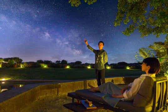 竹富島を含む八重山諸島の星空は日本で初めての星空保護区(*1)に認定されています。全天88星座のうち84を見ることができ、21個ある一等星はすべて見られるほど暗い夜空が特徴的な地域です。この空の暗さを保ち、星空を美しく眺められるよう、星のや竹富島には上空に向けて光を放つ照明はありません。見上げると、視界いっぱいに広がる無数の星や流れ星、そして南十字星(*2)を鑑賞することができます。