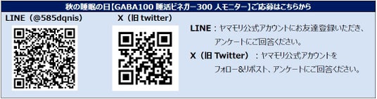 これを受け、ヤマモリでは「GABA100睡活ビネガー」の300名のモニターを募集します。ヤマモリ公式LINE・X(旧Twitter)を介してアンケートにお答えいただいた方の中から300名に「GABA100睡活ビネガー」1本(1本で約2週間分)をお送りします。おいしく無理なく2週間のチャレンジで、睡眠を振り返る機会をご提案したいと考えています。