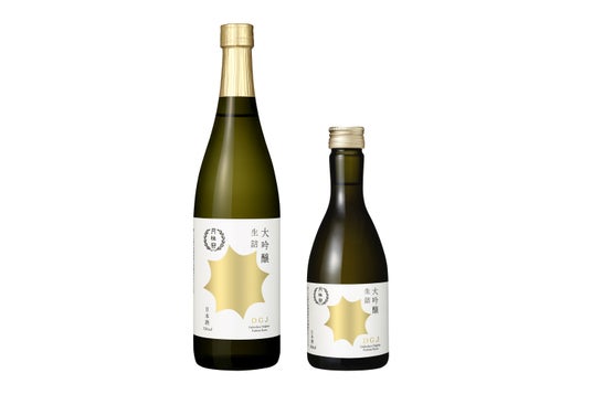 日常の食卓で映える、シンプルで洗練されたたたずまいを追求したデザインに刷新しました。720mLの容器には緑がかった黒色びんを用い、金色のキャップおよびキャップシールを被せることで上質さを表現。720・300mLどちらもラベル中央には、月桂冠「大吟醸」を口に含んだ際に感じるフルーティさ、すっきりさをイメージした金色のモチーフを大きく配し、右上に記した「大吟醸」「生詰」の文字により製法の特徴をわかりやすく訴求しました。さらに右下にローマ字で「Gekkeikan Daiginjo」「Fushimi, Kyoto」と表記、大吟醸を略した「DGJ」を金色の文字で併記しています。