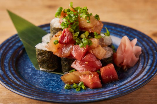 巻物に新鮮な魚の漬けをたっぷり乗せました。