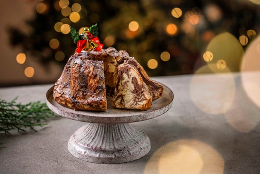 オーストリアのクリスマスに欠かせないクグロフ。クリスマスらしくシナモンやオールスパイス、ナツメグなどをきかせた生地に、チョコレートの生地を合わせてマーブル状に仕上げました。甘いバターの風味にスパイスとラム酒が豊かに香る焼き菓子です。