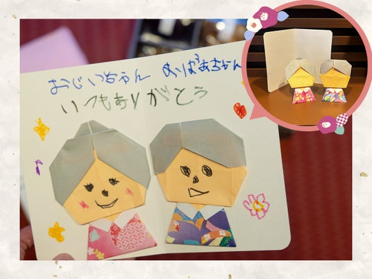 本ギフトはメッセージカードと、ひとつひとつ丁寧に折ったおじいちゃん・おばあちゃん折り紙をセットにしております。