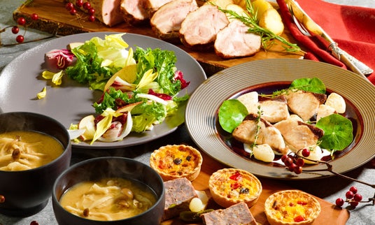 北海道産野菜のラタトゥイユをサクッとしたタルト生地に詰めて焼き上げた「秋野菜のタルトプロバンサル」、北海道では秋に旬を迎える脂がのった天然ブリと地元産大根の「洋風ブリ大根 柚子のブルーブラン」、北海道産リンゴとみずみずしいカブの「リンゴとカブの菊花サラダ」など、カジュアルに秋のフレンチダイニングメニューをお楽しみいただけます。その他、この時期定番の「北海道産キノコ汁」もご用意し、肌寒くなる夜のひと時、優しく体を温めます。