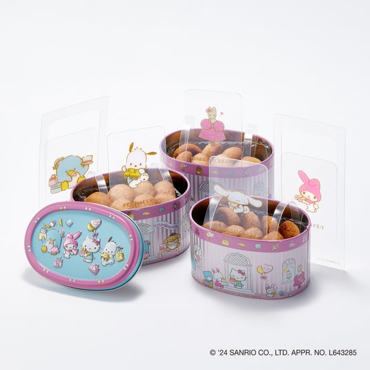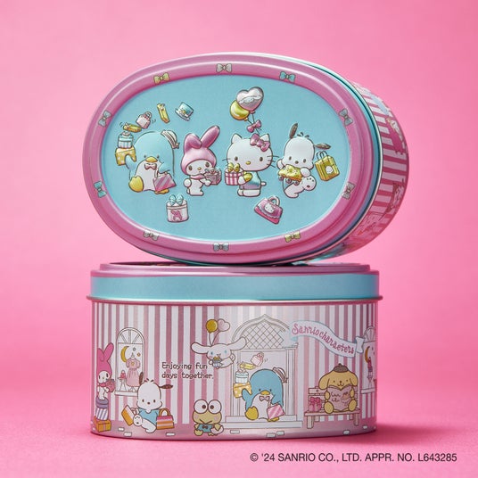 缶にしたときに可愛く映えるよう、賑やかに配置されたサンリオのキャラクターや、キャラクターをイメージした小物たち。どこを見ても楽しい仕上がりとなっています。