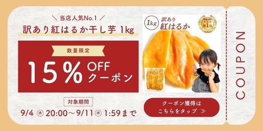 人気No,1訳あり 紅はるか干し芋 1kgで使える15%OFFクーポン