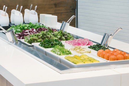 サラダバー(約10種類のサラダ)、デリバー(約12種類の料理)、ココット料理(3種類のお米料理)、デザート(約5種類)、スープ、オリジナルパン(4種類)、ドリンクバー(約7種類)