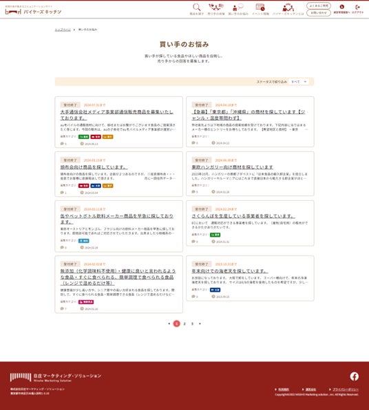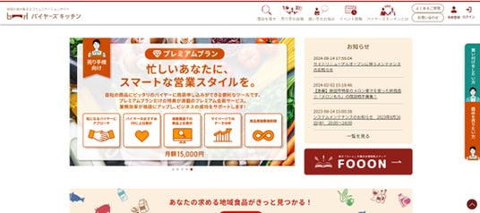 株式会社日庄マーケティング・ソリューション(本社:東京都中央区日本橋、代表取締役 杉山章、以下「当社」)は、地域食品に特化したマッチングサイト「バイヤーズキッチン」をリニューアルし、9/4(水)より新たにオープンいたしました。当サイトは、地域の食品メーカーと、地域食品を求めるバイヤーをつなぐプラットフォームとして、地域食品の販路拡大を支援します。