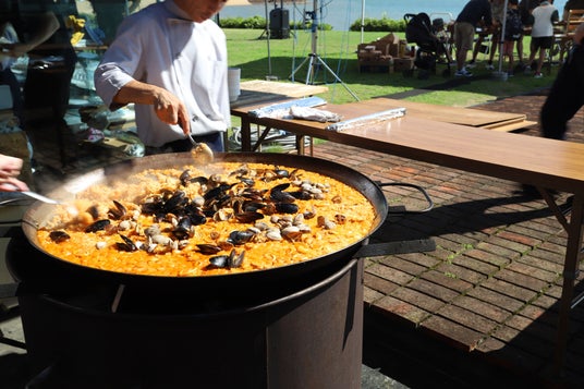 大鍋パエリアの無料配布を行った13:00と15:00には、配布時間の前から多くの方が行列をつくり、大盛況でした。