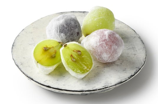 今だけの限定品種の葡萄も詰合せました。食べ頃の葡萄5品種を薄い求肥で包んだみずみずしい銘菓 。シャインマスカットやナガノパープルなどを詰合せ。