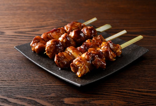 酒の肴にも! 日本3大地鶏がぴったり! 名古屋コーチンと比内地鶏の焼鳥串をおうちで焼き立てを。【銀座三越限定】 〈伊藤和四五郎商店〉 地鳥食べ比べセット 2,700円 (4種×各2本・焼き鳥のたれ〈200ml〉×1本) ※各日5セット限り ※画像は調理例です。