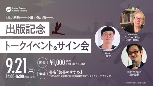 弊社刊行書籍『黒い蜻蛉――小説 小泉八雲――』をお持ちの方はご持参ください。なお、当日会場にて購入することも可能です。トークイベント後、著者と訳者によるサイン会を予定しております。