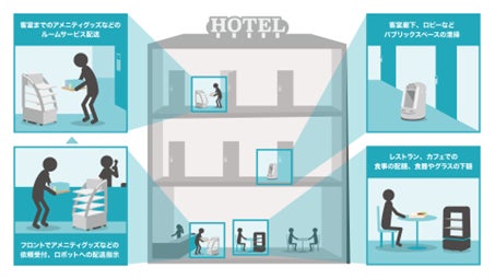 ■ 宿泊客からのアメニティグッズ等のルームサービス依頼に対応し、ロボットが客室まで配送