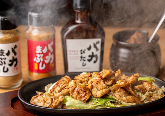 「バイきんぐ」の西村瑞樹氏が監修した調味料「バカシリーズ」を使用した、とり焼肉店”元祖
