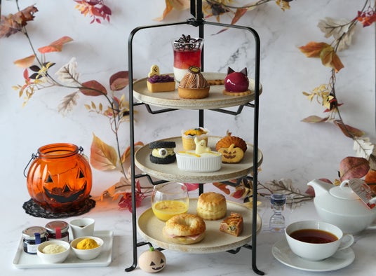 夏の暑さが和らぎはじめ、木々が色づき始める季節。栗、芋、南瓜、林檎など、旬の食材でお届けする色鮮やかなアフタヌーンティーをご用意いたします。3段のティースタンドはおひとり様1台ずつ提供されます。一皿一皿にハロウィンの楽しいテイストを加えたスイーツと共に優雅な午後のひと時をお過ごしください。