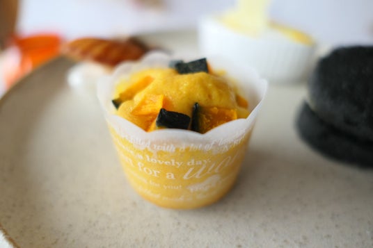 ホクホクの食感で甘さが強いえびす南瓜のペーストを生地にたっぷり。南瓜の果肉とクリームチーズが