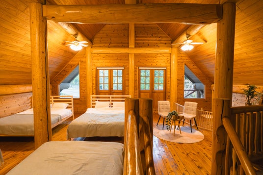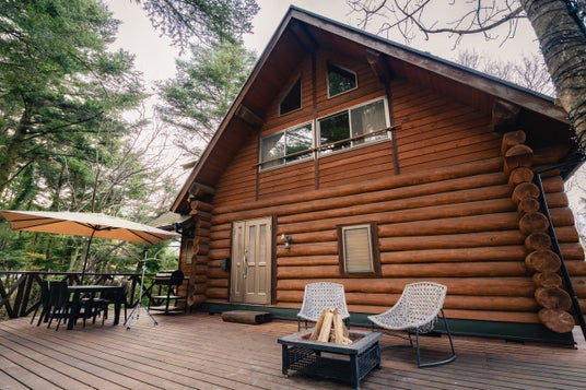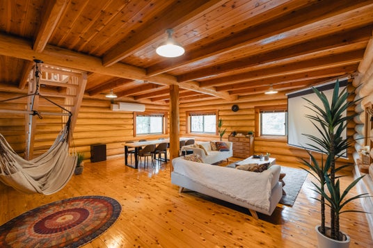 コテージ宿泊は全2棟、最大8名様までお泊りいただける大迫力のログハウス・KUUSI(クーシ)と、