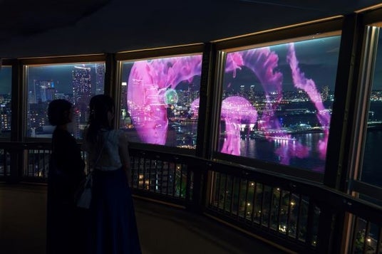 楽しみ方1.:夜の展望フロア メディアアートギャラリーにて、アクアリウム映像を上映!