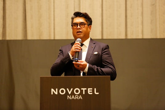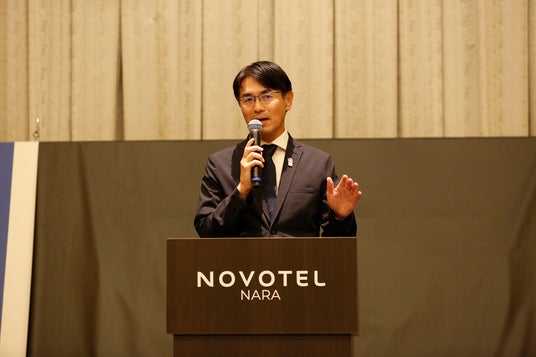 開業日当日は午前10時より、ホテル宴会場(Earth)にてオープニングセレモニーを実施しました。ノボテル奈良 総支配人 戒田真によるオープニングスピーチでは「奈良の観光課題である日帰り観光地から宿泊型観光地への脱却へ向けまして、一翼を担えるよう行政と一体となり、引き続き取り組みを続けてまいります。また、奈良を代表するホテルになり、そして地元の皆様に末永く愛されるホテルを目標に精進してまいります。」と語りました。続いて、ホスピタリティグループ・アコー 日本代表取締役 ディーン・ダニエルズは「奈良は美しい町、美しい風景、歴史、文化があり、国内のみならずインバウンドのお客様にも魅力的な観光地と感じております。今後も地域の皆様と連携し、愛されるホテルを作って参りたいと思います。奈良県奈良市の皆様に本当に心から感謝を申し上げます。」と開業に当たっての想いを語りました。奈良県知事 山下真氏の祝辞では「奈良県はインバウンドのお客様も鰻登りで増えておりますし、来年には大阪関西万博もございます。これからの奈良県における宿泊需要がどんどん高まっていくのではないかなという風に思っております。また、奈良県を日帰り観光から宿泊滞在型観光へ変えるべく進めており、2030年に年間500万人の宿泊者を奈良にお招きするという決意で、我々一丸となって取り組んでおります。アコーグループとも手を携えて、この目標実現に向けて頑張って参りたいと思います。」と、今後の期待について語りました。