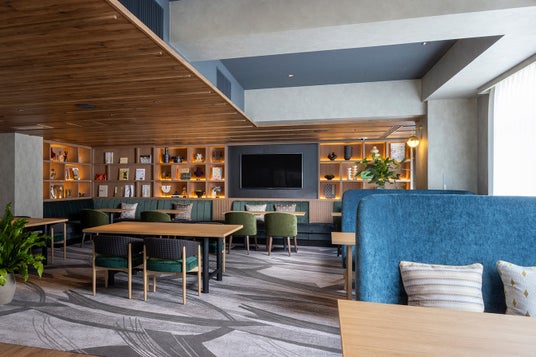 そして高層階(8-9階)にとスイートルームご宿泊のお客様に限りエグゼクティブラウンジをご利用いただけます。ワークスペースやリラックスタイムに重宝する落ち着きのある空間で、無料の軽食やドリンクと共にエクスクルーシブなひと時をお楽しみください。