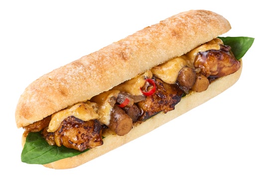 ライスメニューに加え、オーダーを受けてから焼きあげるホットフード「焼きたてサンド」シリーズから、「炭火焼きチキンと甘辛ごぼう~胡麻マヨソース~」も同日より新発売。炭火で焼いた鶏もも肉に、甘辛く煮た丸ごぼう、胡麻マヨネーズを合わせた一品です。秋らしい香ばしさと多彩な食感をお楽しみいただけます。