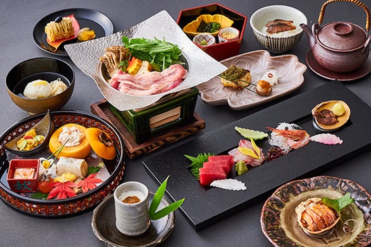 素材の持ち味をいかした繊細な味つけ、季節感あふれる彩りや盛り付けなど工夫を凝らした料理をご賞味いただけます。本格的な会席料理をはじめ、ご昼食メニューや御膳、しゃぶしゃぶなどをご用意。ゆったりとした時の流れを感じさせる落ち着きのある空間で、伝統ある日本料理をお楽しみください。