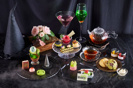 約15年ぶりに大阪四季劇場で上演中のミュージカル『ウィキッド』。再演の希望も高く、年内の公演は前売りチケットがほぼ完売。人気ミュージカルの世界観を、アフタヌーンティーで表現いたしました。