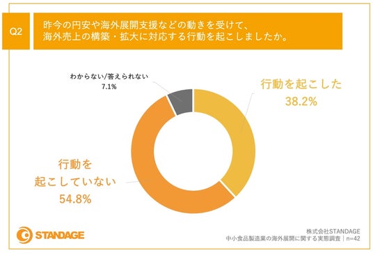 ■38.2%が、海外売上の構築・拡大に対応する行動を「起こした」と回答、一方で、54.8%が「起こしていない」実態