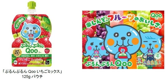 新たにシリーズに加わる「ぷるんぷるんQoo いちごミックス」は、大人にも子供にも人気のフルーツいちごにりんごを加えたフレーバーで、ブランドいちご「あまおう※1」エキスを使用した贅沢な味わいが特長です。寒天によるみずみずしい食感が楽しめるほか、カルシウムや鉄分、ビタミンDが入った管理栄養士推奨品で、日々のおやつや、頑張った日のご褒美としてお手に取っていただけます。持ち運びに便利な飲み切りサイズで、凍らせてもおいしく食べられますので、外出先・レジャーでの親子時間でもお楽しみください。