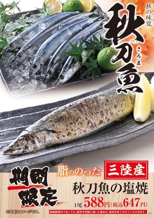 株式会社モンテローザ(本社:東京都杉並区梅里1-21-15 代表取締役:大神輝博)は、「白木屋」「魚民」「目利きの銀次」「山内農場」など全国の当社店舗で、三陸産「秋刀魚」の塩焼きを1尾588円(税込647円)で提供いたします。さらに、大分県産の「かぼす」を使用したハイボールとサワーもご用意しました。