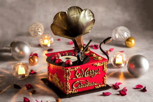 今にも音楽を奏でそうな蓄音機型のクリスマスケーキ。
