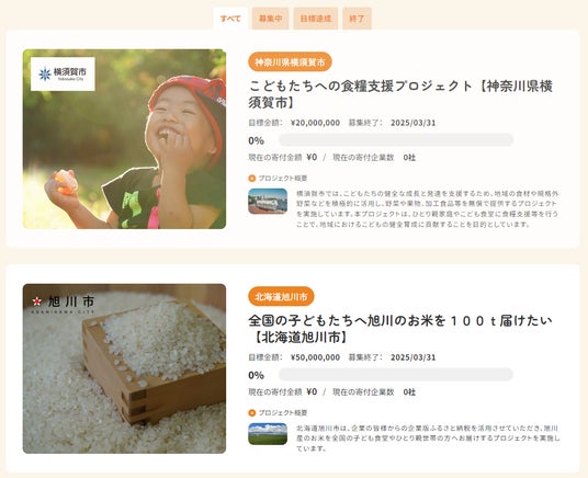 昨年度、神奈川県三浦市および横須賀市にて実験的なプロジェクト運用を行い、実効性を確認できたため、昨年度の参画自治体である神奈川県横須賀市に加え、北海道旭川市とも連携し、こどもたちへの食料支援プロジェクトを本格開始します。