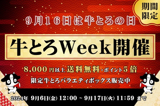 期間限定でお得に牛とろを楽しめる「牛とろWeek」では、8,000円以上のご購入で送料無料や全商品ポイント5倍といった魅力的な特典が盛りだくさん。