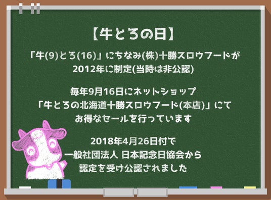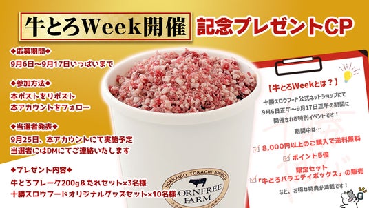 株式会社十勝スロウフード(北海道清水町、代表取締役:山本英明)は、9月16日の「牛とろの日」を記念し、特別キャンペーンを開催いたします。