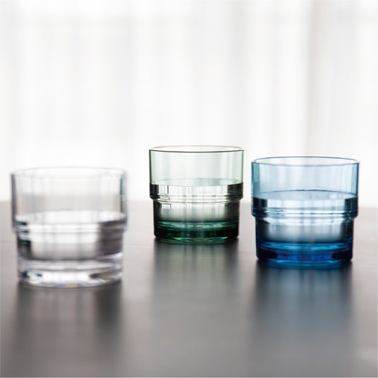 一見ガラスのような透明度と美しさですが、樹脂素材のタンブラー3個セット。