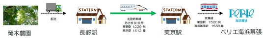 ○また、開催期間中の3日間で、JR 東日本グループが展開している即日お届け列車便「はこビュン」を活用し、岡木農園(長野県須坂市)で収穫した新鮮な「朝採れブドウ」を北陸新幹線で期間・数量限定で輸送・販売します。