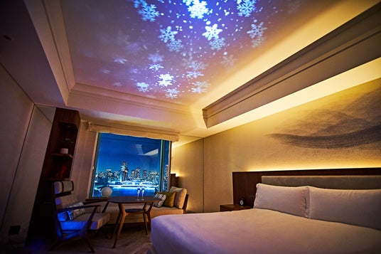 2シングルクラシックリバービュークラブラウンジアクセス(20-24F) 、2シングルクラシックリバービューNAGOMIラウンジアクセス(14-17F)の一部のお部屋に、雪の結晶を映し出すライトを設置。