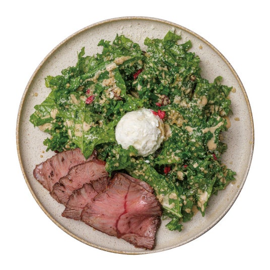 炭火ローストビーフ&ケールサラダ身体に嬉しい栄養素と満腹感が得られる商品です。やわらかい国産牛ミスジと一緒にB-カロテン・ビタミン・カリウム・カルシウム・ミネラルが豊富なケール、鉄分をはじめ、マグネシウムやカルシウム、ビタミンが豊富なオーガニックキヌアにオーガニックカルフォルニアレーズンを使用。キレの良い後味、さっぱり系のハンガリー産アカシアハニーと焼肉屋のタレを使った& Yogurt特製のオリジナルソースをかけています。