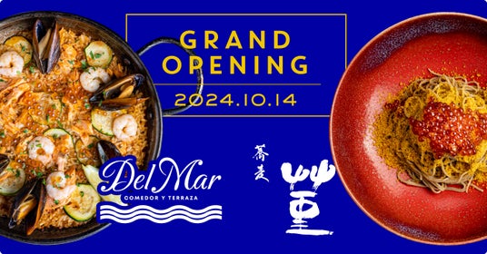 東京・横浜を中心に京都・沖縄など国内に37店舗のレストランを展開する株式会社HUGE(本社:東京都渋谷区、代表取締役社長 兼 CEO:新川 義弘 以下HUGE)は、スペイン料理を提供する「Del Mar COMEDOR Y TERRAZA」(デル マール コメドール イ テラッツァ)、こだわりの蕎麦と多彩なつまみを楽しめる「蕎麦 菫」(そば すみれ)を、2024年10月14日(月)に横浜ハンマーヘッド2Fにオープンいたします。