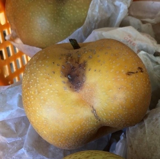 ■枝が実にこすれて規格外品となった梨