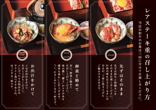 至高の和牛レアステーキ重メニュー