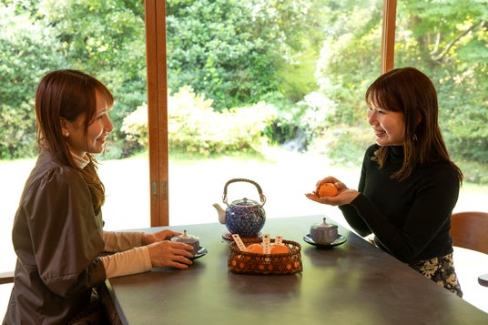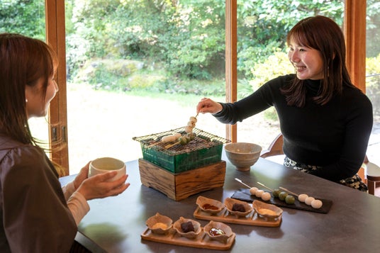 ・静岡県産ミカンやご自身で焼く炭火焼のお団子、「天空の抹茶(R)」を味わうひととき。