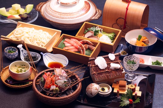 6:30P.M. 冬の味覚を取り入れた夕食日本の原風景を模した前菜や蟹のしゃぶしゃぶ鍋をご用意いたします。お部屋でゆっくりと、冬の味覚を存分にお楽しみください。鍋の〆にはうどんをご用意し、ほっこりと温まるひとときをご堪能いただけます。
