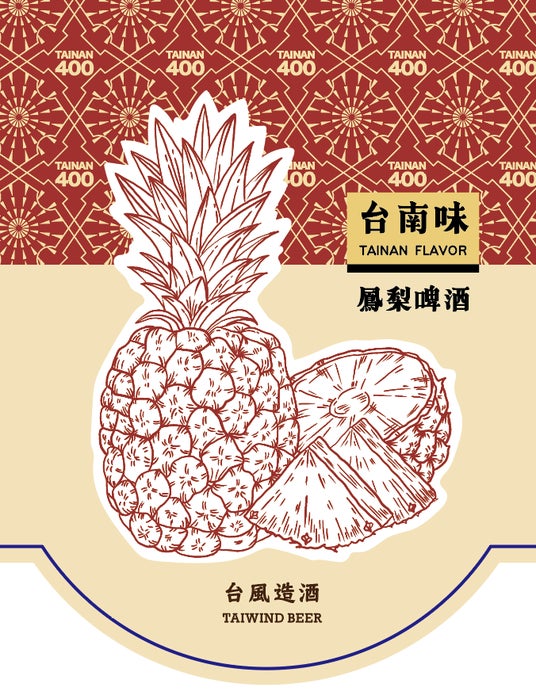 台南関廟産のゴールドダイヤモンドパイナップルの果肉を使用!溢れ出すトロピカルフルーツのようなベースに、一つずつ手切りしたパイナップルをを加えて発酵させたビールは甘くて瑞々しい味わい。2024年5月の台湾総統就任記念晩餐会で供された際の台南開府400年記念ラベルと通常ラベルの2種類でお届けします。
