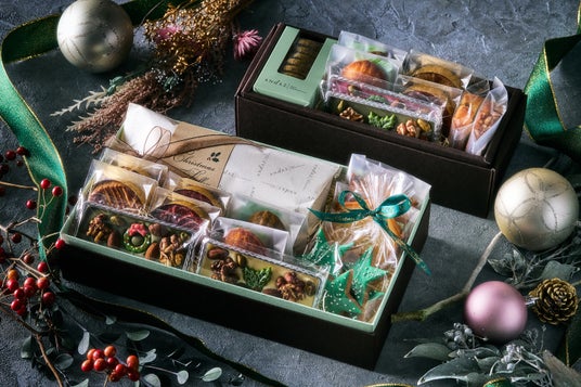 今年のフェスティブシーズンのハンパーギフトは、クリスマスやお正月の贈りものに最適な3種類のラインナップでお届けいたします。バターの香り豊かな厚焼きクッキー 「ガレットブルトンヌ」や、リースなどのクリスマスモチーフが可愛らしい「クリスマスマンディアン」などホテルメイドのスイーツを中心に詰め合わせました。『フェスティブハンパーM』ではシェフパティシエ ノルマン・ジュビンおすすめの、数種類のスパイスをブレンドした華やかな香りを感じる「シュトーレン」と「ジンジャーブレッド クッキー」をお楽しみいただけます。『アンダーズ フェスティブ バスケット』は、「ビルカール・サルモン ブリュット・ロゼ」のアンダーズ 東京10周年記念ボトルを入れた特別感のあるギフトです。ホームパーティーや大切な方への贈り物など、クリスマスや年末年始を華やかに彩るアイテムとしてご利用ください。